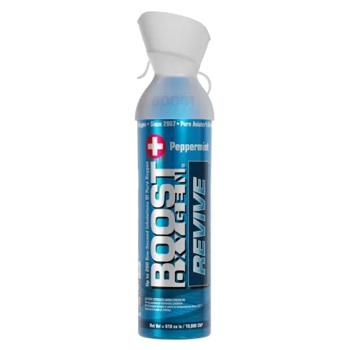 Boost Oxygen® är ett helt naturligt andningsstödjande produkt för aerob återhämtning och prestation. REVIVE Peppermint Portable Oxygen Canister är enkel och säker att använda och ger extra syre där du behöver det. Det är rent och koncentrerat extra syre som är nästan 5 gånger så mycket som det syre vi andas in i normal luft, som bara är 21 % vid havsnivå. Pepparmintarom är känt för att ge en energikick och hjälpa till med mental vakenhet. Extra syre har alltid varit till nytta för så många människor av så många olika skäl. Från höjdacklimatisering till idrottare till alla som upplever andnöd. Sedan 2007 har Boost Oxygen® gjort bärbart extra syre tillgängligt för alla utan recept. Boost Oxygen® kommer i en bekväm, lättanvänd och bärbar behållare utan kemikalier, drivmedel eller biverkningar. Det är ett utmärkt val för idrottare, äldre vuxna, människor på hög höjd och människor som bor i områden med dålig luftkvalitet. Personer med andningssvårigheter uppskattar också tillgängligheten. Det kan hjälpa dig att känna dig pigg och utvilad efter bara några andetag. Må bättre, återhämta dig snabbare och förbättra din prestation med den bärbara syrebehållaren REVIVE Peppermint från Boost Oxygen®.