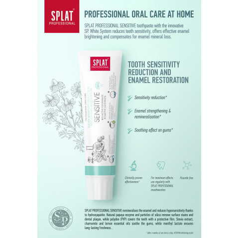 SPLAT PROFESSIONAL SENSITIVE är en effektiv stärkande tandkräm som kompenserar för mineralförlust.
